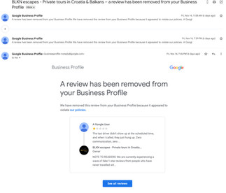 Week ago, our google business profile page - BLKN Escapes - Private Tours in Croatia & Balkans, a small boutique travel agency based in Zagreb, Croatia - has became the target of what obviously looks like a coordinated fake review attack.